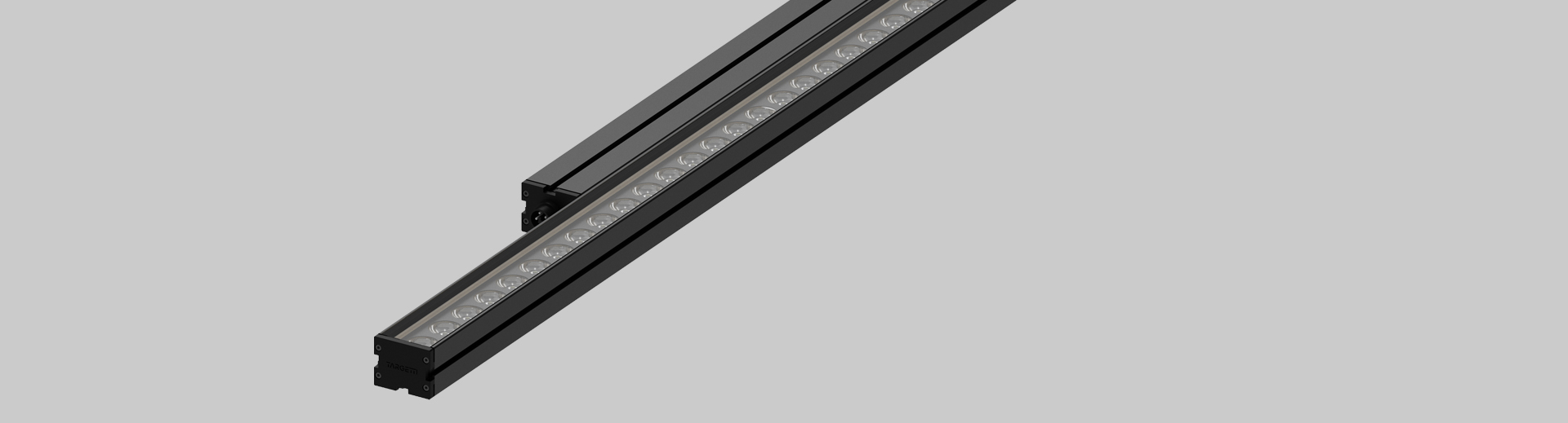 Wall Washer: longitudinal anti-glare screen (with inclined louvers) in black painted steel.