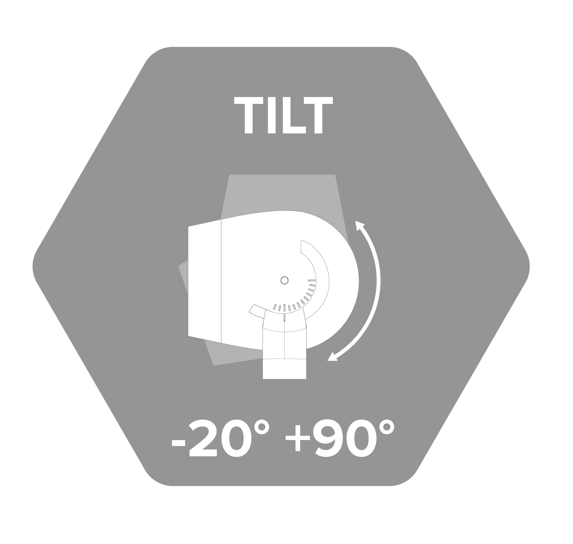 The projector can be quickly rotated 360° in the horizontal plane and tilted -20°+90° vertically with easy using two lockable adjustment rings.