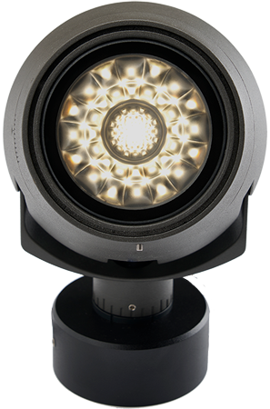 The Vader Zoom optical system was developed for manual adjustment of the light beam with emissions from Spot to Medium Wide Flood. The adjustment is continuous, and lockable, and a practical graduated scale facilitates replication across multiple fixtures.