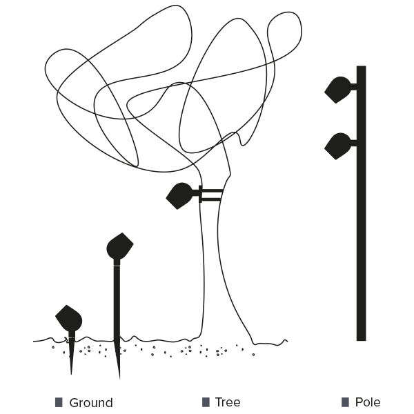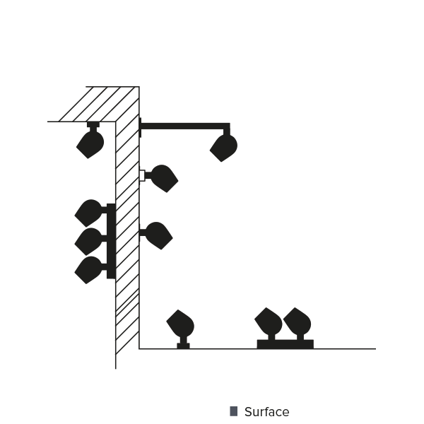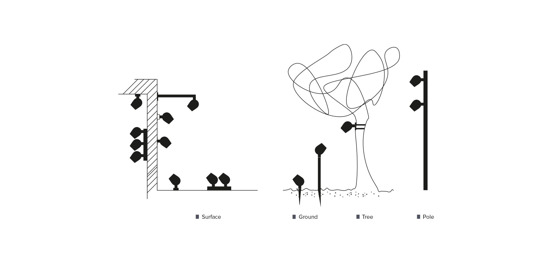 Vader is equipped at the base with a standard connection joint (G 1/2) which makes it compatible with different installation accessories for surface, pole, cornice and ground applications.