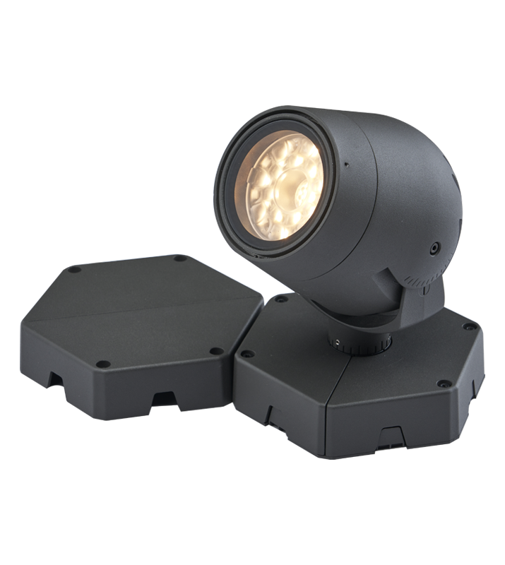 One particular installation option for Vader One is provided with the unique hexagonal-shaped base, allowing for single and multiple geometric clustering. Conceived as modular elements, Vader One projectors can be connected to each other, allowing the number of fixtures used to vary as project conditions change.
