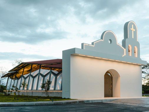 Monica Franco - MF Arquitectos and inaugurated in 2021, the chapel breaks down the barriers of traditional design by harmoniously blending the colonial style of the 19th century with contemporary design. The merge of the two architectural languages creates an evocative atmosphere capable of capturing visitors from the very first moment.