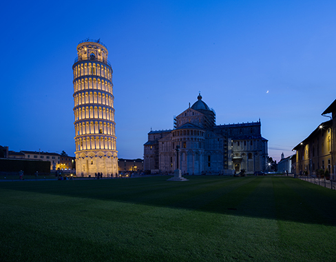 Opera della Primaziale Pisana, la Superintendencia y la Delegación de Pisa, para buscar el efecto y la temperatura color perfectos para resaltar plenamente el sofisticado contraste entre ligereza y solidez que caracteriza al monumento.